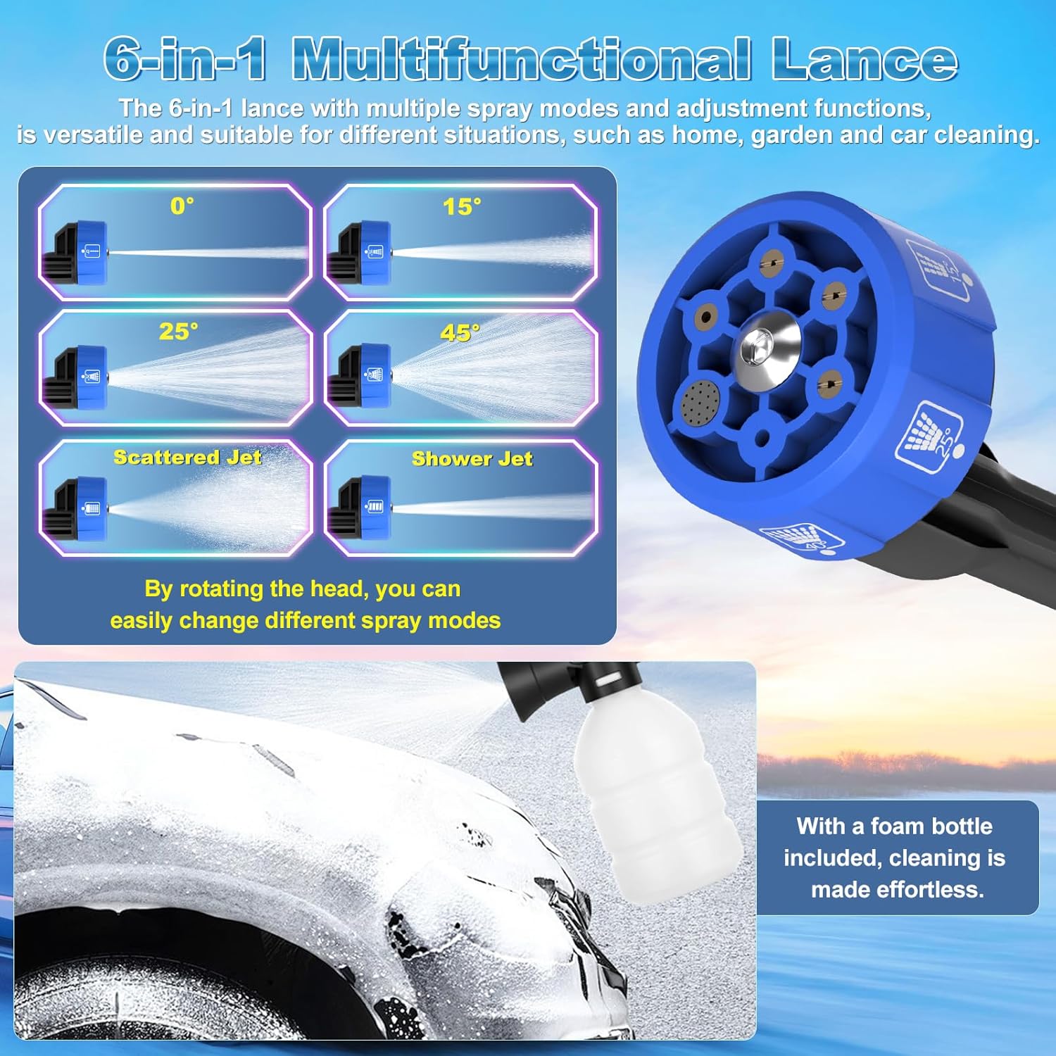 La buse rotative 6-en-1 transforme ce nettoyeur en un véritable couteau suisse du nettoyage :
